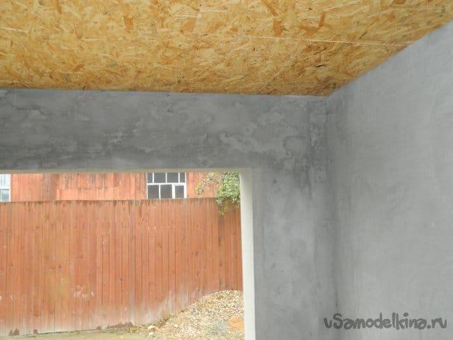 Стены утепления не требовали, так как выполнены из пенобетоны с теплопроводность 0,13-014 Ккал/м²*град. При выполнении штукатурных работ в стены были встроены горизонтальные бруски, к которым, собственно, и должна была пришиваться вагонка.