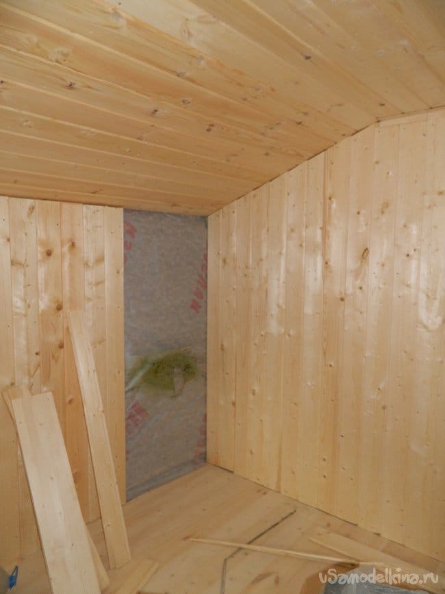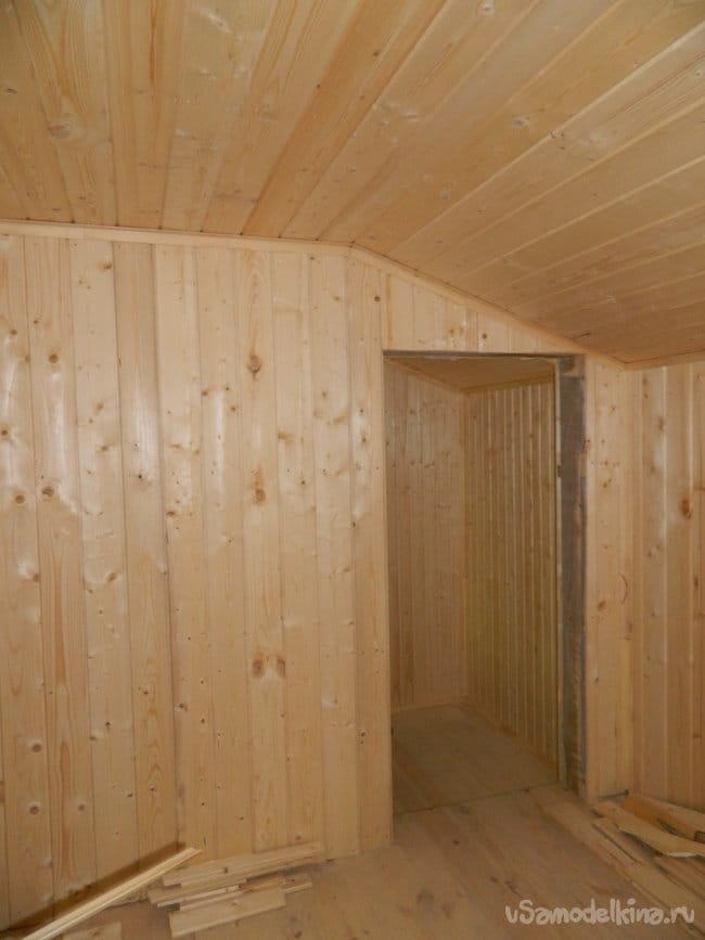 Часть стены в правом углу комнаты (если смотреть от дверного проёма) не была зашита вагонкой,