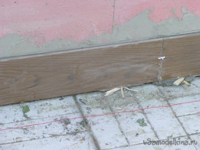 Затем покрыли все стены бетоконтактом Glims (стандарт) и начали укладывать на цоколе керамогранит.