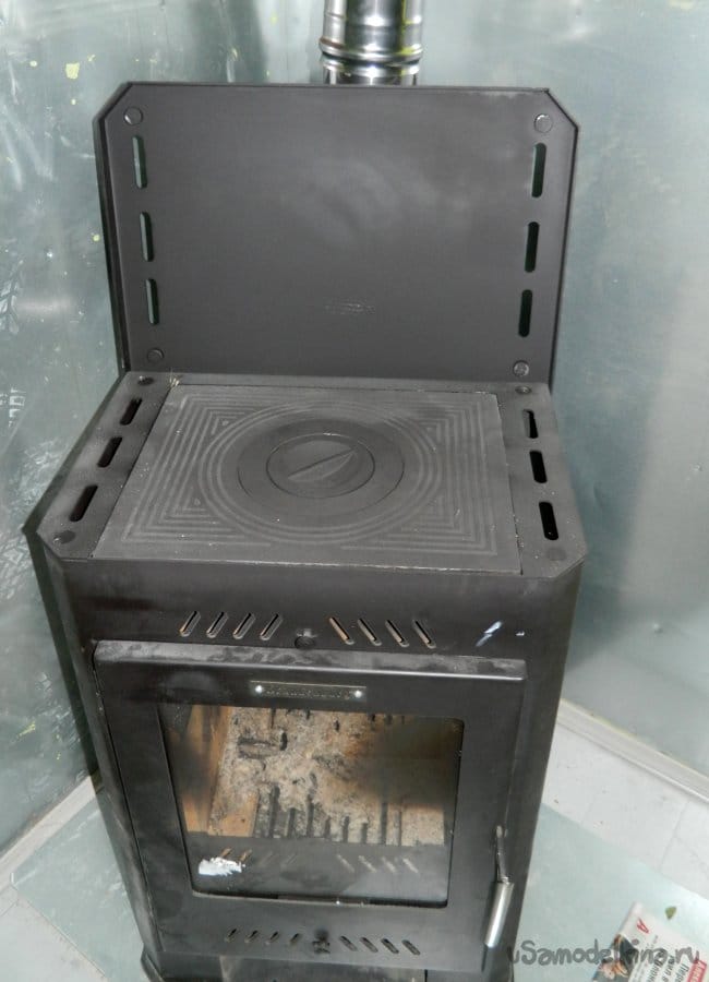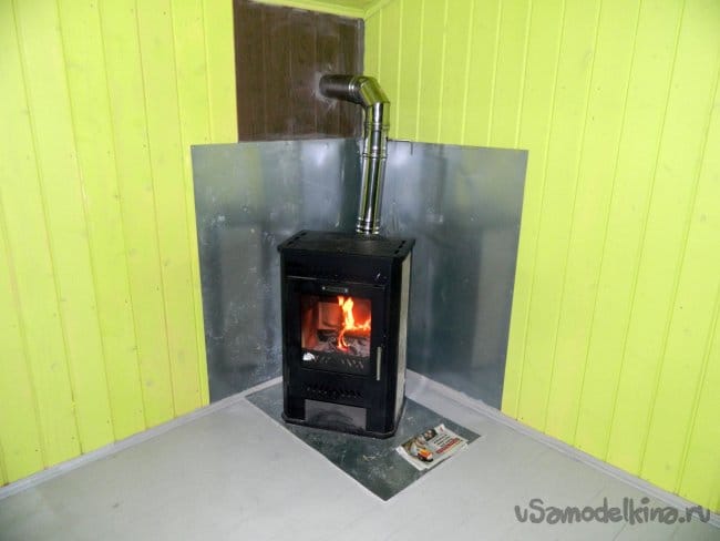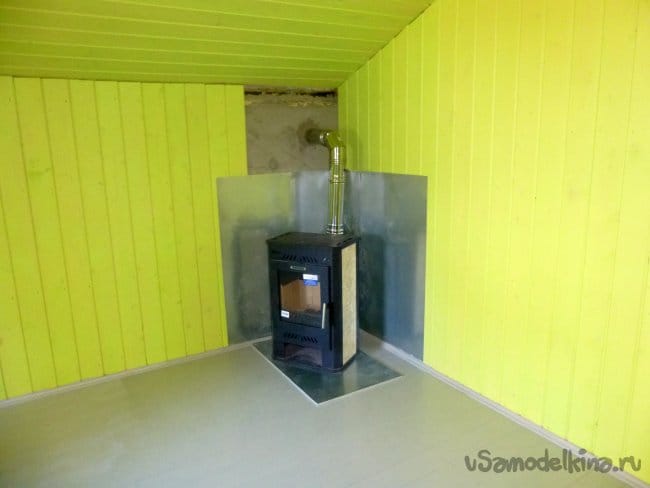 Затем дошла очередь до камина. Камин Brandenburg установлен на металлический лист с подкладкой теплоизолирующего материала. Кстати, в камине предусмотрена варочная панель.