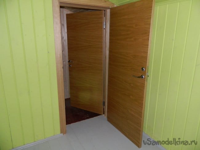 Наружная дверь установлена с ключом, внутренняя — просто с задвижкой.