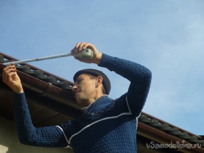 Вначале рабочие собрали всё на земле, а потом уже устанавливали. Сливы и снегозадержатели покупал в ближайшем строительном магазине недорого (пос. Огуднево).