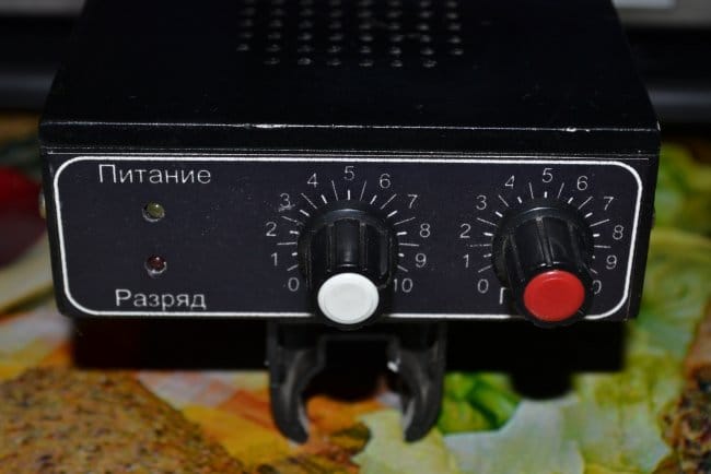 С передней стороны расположились основные органы управления и индикации: грубая настройка, тонкая настройка, индикатор питания и индикатор разряда.