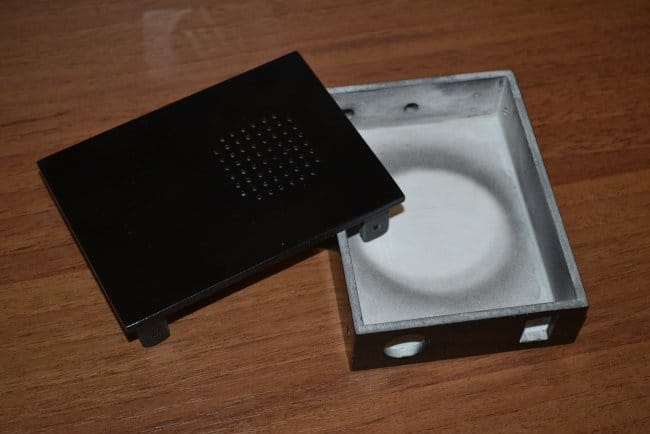 Корпус выполнен из вспененного ПВХ. Это шикарный материал для изготовления корпусов РЭА в домашних условиях. Он легко обрабатывается, режется монтажным ножом, легко сверлится, шлифуется, но при этом обладает хорошими прочностными характеристиками и стоек к ударам. Клеится он цианоакрилатным клеем, при этом использовать такой клей даже предпочтительно, он проникает в поры этого пластика и разорвать по шву его невозможно, разорвется пластик рядом со швом. Корпус окрашен обычной черной акриловой эмалью в баллонах.