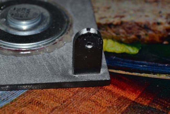 Крышка присоединяется при помощи специальных ушек. На корпусе под них просверлены отверстия, и для удобного использования применены кожаные шайбы.