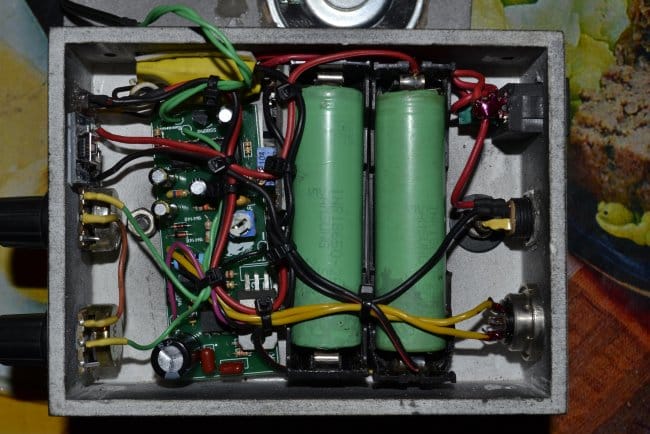 Питание осуществлено от популярных и дешевых ныне литиевых аккумуляторов формфактора 18650 через повышающий DC/DC преобразователь. Шумы преобразователя, как оказалось, на работу конкретно этого детектора не влияют. Питание от аккумуляторов на преобразователь подается через диод. Нужно это для того, что бы при питании от внешних аккумуляторов заряд не шел на внутренние. Хотя в результате эксплуатации прибора я понял, что внешнее питание излишне. Внутренних хватает для нескольких дней работы устройства.А в общем, давайте посчитаем: