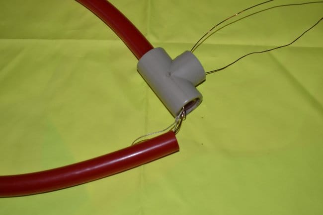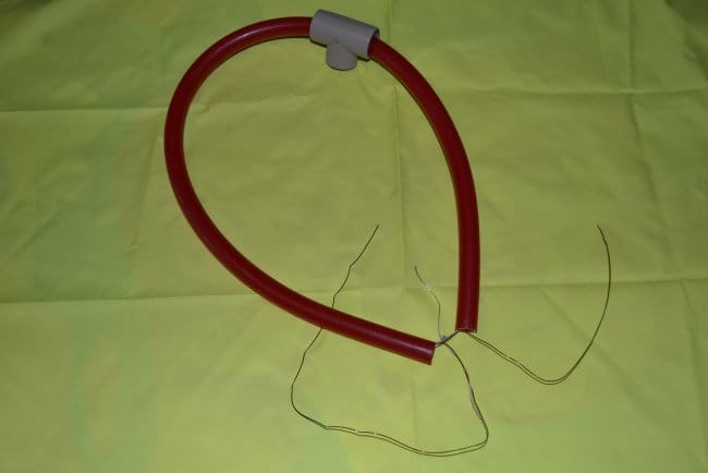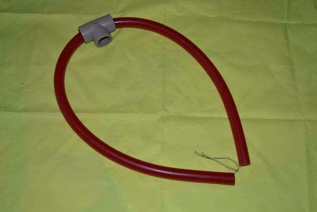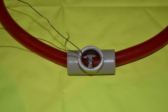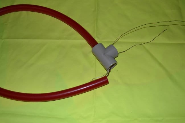 Катушка изготавливается из трубы для теплых полов и тройника под пайку под 20-ю трубу. Под катушку диаметром 25 см нужно отрезать 80 см трубы.