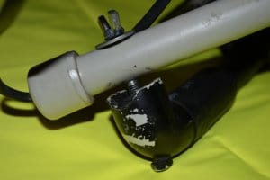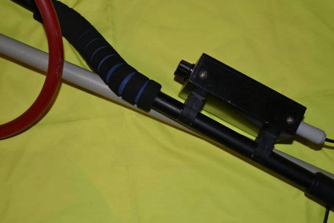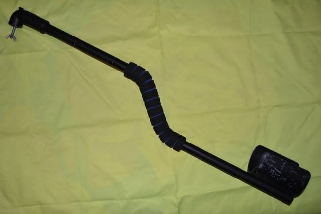Просто, легко, прячется в рюкзак без проблем. Опробовав прибор решил штангу сделать поудобнее. Нижнюю часть оставил, какая была, верхнюю переделал. Для этого взял пластиковую водопроводную трубу, насыпал внутрь соль как можно плотнее, нагрел над комфоркой и загнул под нужный угол. Покрасил, на место хвата надел поролоновую велосипедную рукоятку, два бакса за пачку четыре штуки.