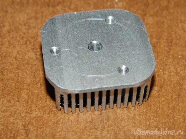 Затем в нём были просверлены одно центральное отверстие ø4 мм для выпуска проводов и три резьбовых М3 для крепления платы.