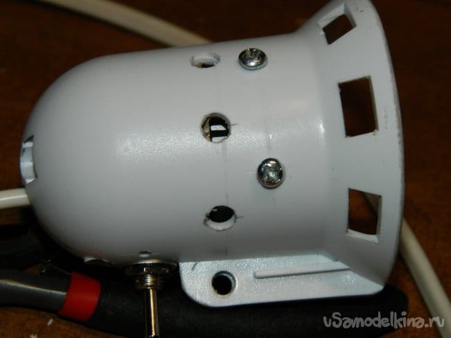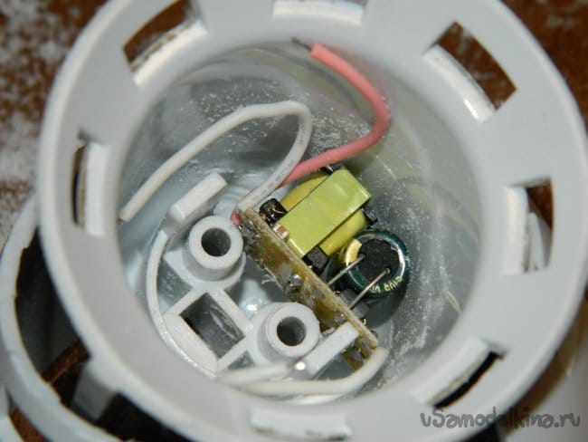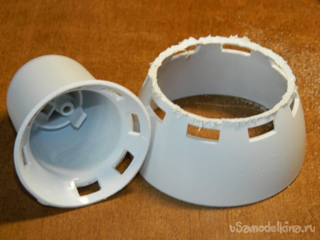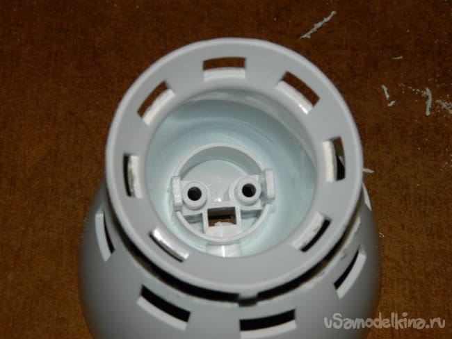 Пластиковый плафон был чуть великоват, и бормашиной я обрезал часть плафона.