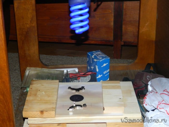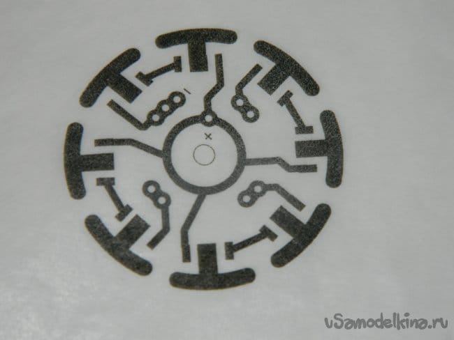 Перед этим надо хорошо подготовить плату. Я взял самую мелкую шкурку и обрабатывал Сифом под тёплой водой (где-то вычитал в Интернете, и по совету прожёг рисунок платы промышленным феном). Плата обработалась прекрасно — вода растекалась по ней, но не смывалась. Обработал POSITIV 20 и, после просушке в духовке при температуре 100°C в течение 40 мин., поставил на засветку под ультрафиолетовую лампу.