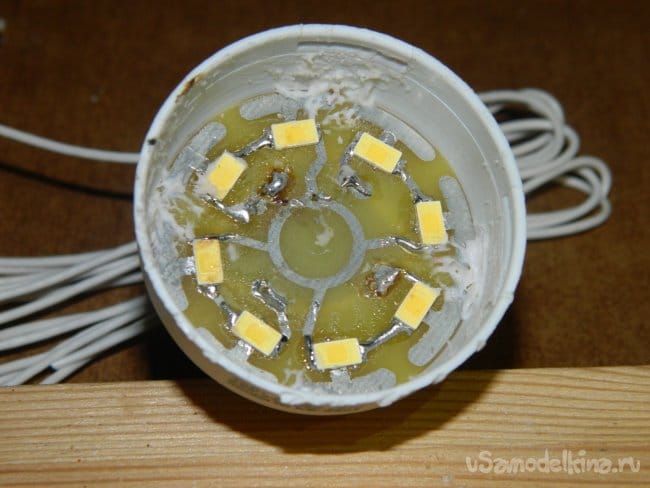 Лампочка, которая попала мне в руки, была нестандартная — всего внутренний ø40 мм, так что мои бы платы не подошли.