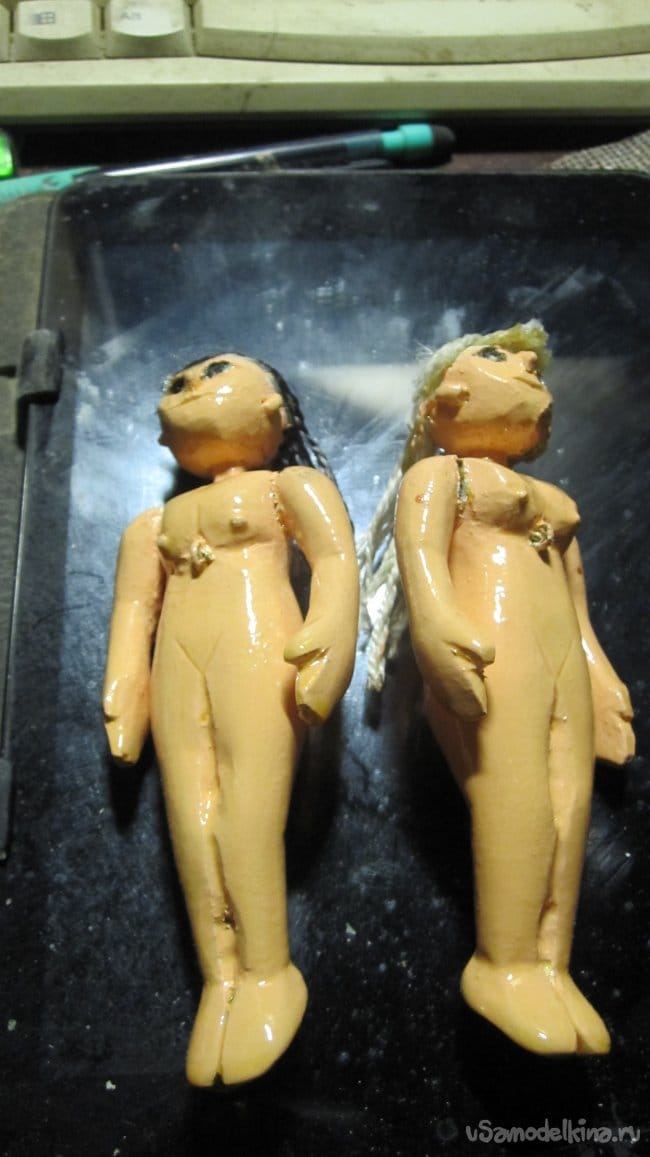 Вот, что получилось. Материал - берёза, рост - 11 см, вес - 28-30 грамм. Примечательная деталь - руки у этих кукольных джерк-бейтов двигаются в плечевом суставе (вперёд, вдоль тела, назад). Ловить попробую весной.