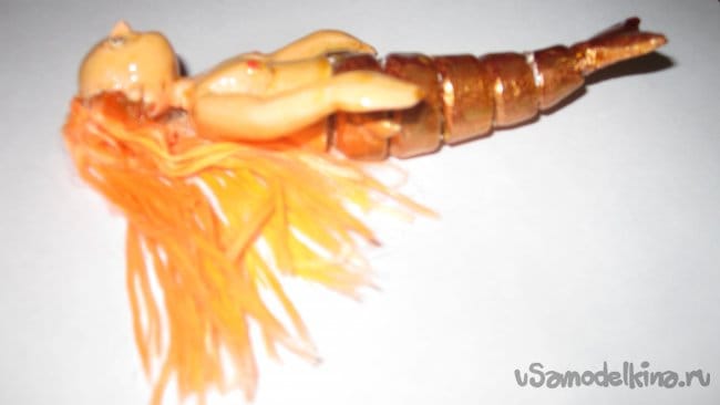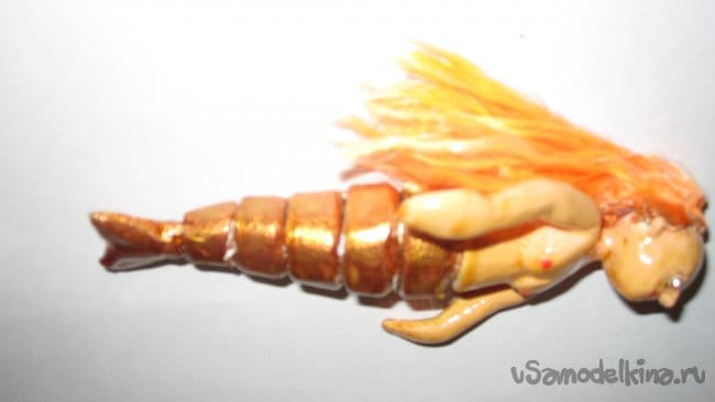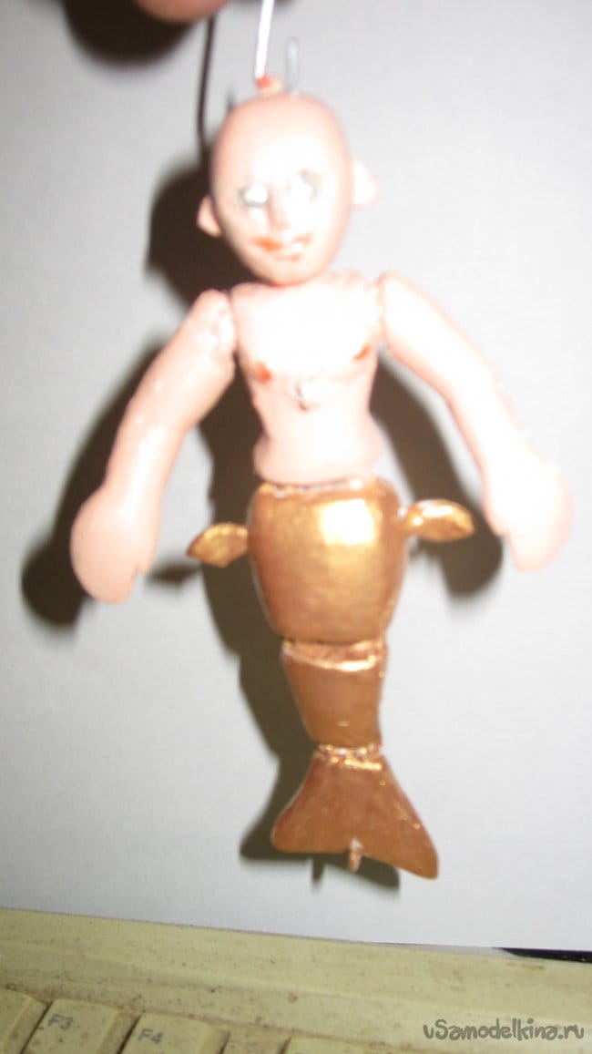 В этой приманке совместил движение рук «человеческой» части тела, как у вышепредставленного джерк-бейта, с плавным движением хвостовой части "морского чудовища". Рост - 90-100 мм, вес - 15 грамм, материал - берёза.