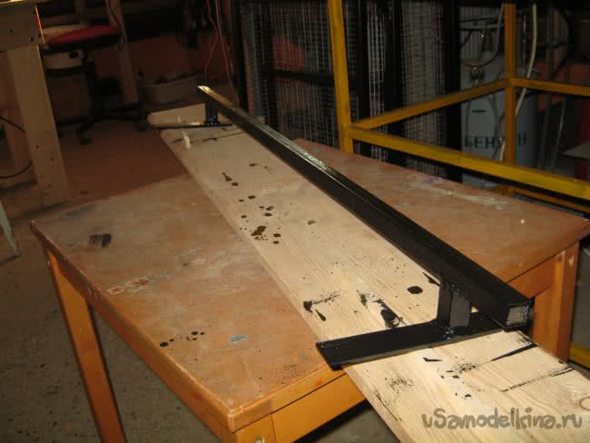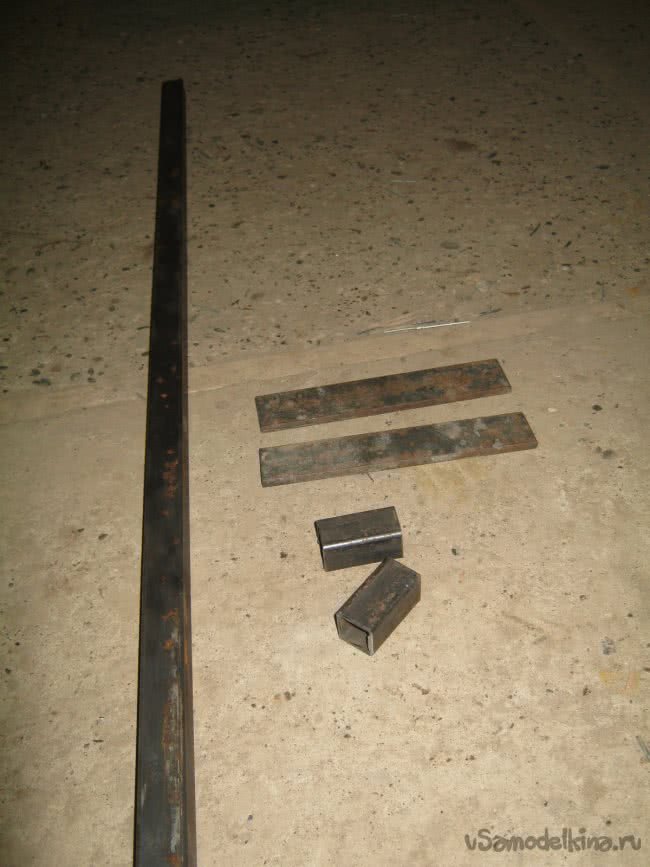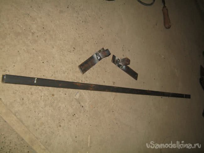 Подобрал в железках подходящие заготовки. Получилось – штанга и две стойки из квадратной трубы 20х20мм два кронштейна из кусков полосы шириной 30 мм.