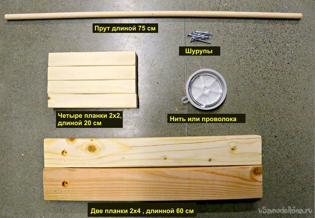 - Четыре планки 2х2 дюйма, длиной 20 см