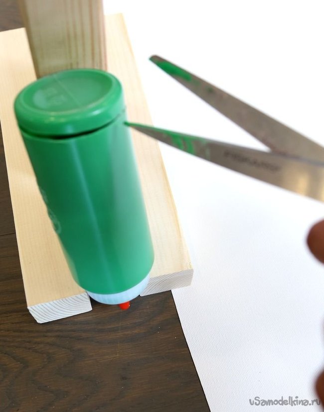 Я использовал квадратный отрезок подготовленного холста. Он будет лежать на полу (или другой поверхности, где будет стоять подставка), и на этот холст мы будем капать красками. Можно использовать стопку картона или плакатный щит - все, что захотите обрисовать : )
