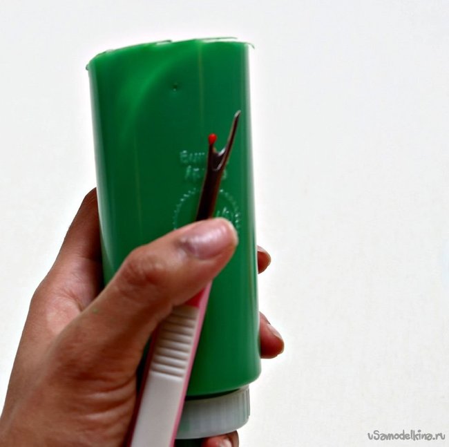 Срежьте наконечник, чтобы получилось более толстое отверстие для оттока краски. Мы сделали краску жиже с помощью воды, так что она должна вытекать безо всяких проблем. Я закрыл отверстие для краски крышечкой, чтобы она раньше времени не вытекла.