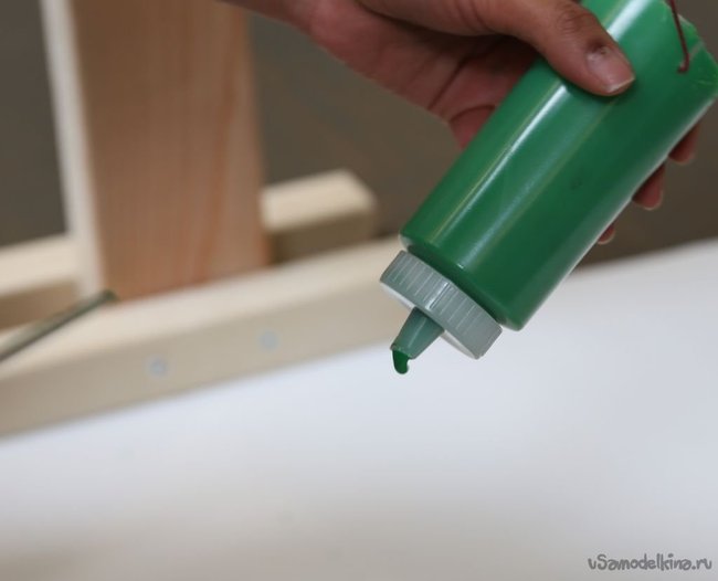Я просверлил маленькое отверстие в пруте, куда продену нитку с аппликатором красок. Это и будет маятник.