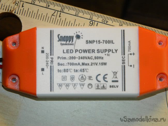 Немного предыстории этого процесса. Для питания светодиодов используется источник тока (ШИМ-драйвер) или любой другой, который выдаёт постоянный ток. Использование ШИМ-драйвера, который выдаёт 700 мА, обеспечит данной схеме и 5-ти последовательно соединённых светодиодов мощность порядка 10-12 Вт, что соответствует 1000-1200 лм светового потока. Этого вполне достаточно для освещения рабочей зоны стола. Потом предстояла рутинная работа распаять всё.