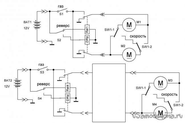- "коробка", переключатель быстро-медленно, включает оба двигателя либо параллельно (быстро), либо последовательно (медленно);
