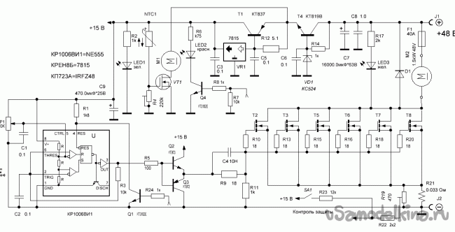 Мощная схема, 1,5 кВт при 48 В (схема неполная).