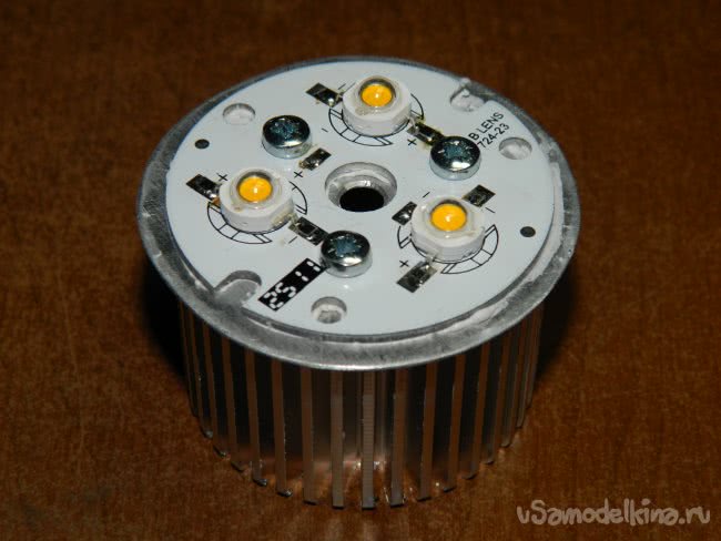 Для ламп использовал светодиоды 3HPD-1 (W=1 Вт; I=350 мА; Uпр.=3,2-3,4 В; Φν=120-130 лм; 2Θ1/2=120°; Т=4000 К; чип Genesis Photonics 38 mil, Тайвань).