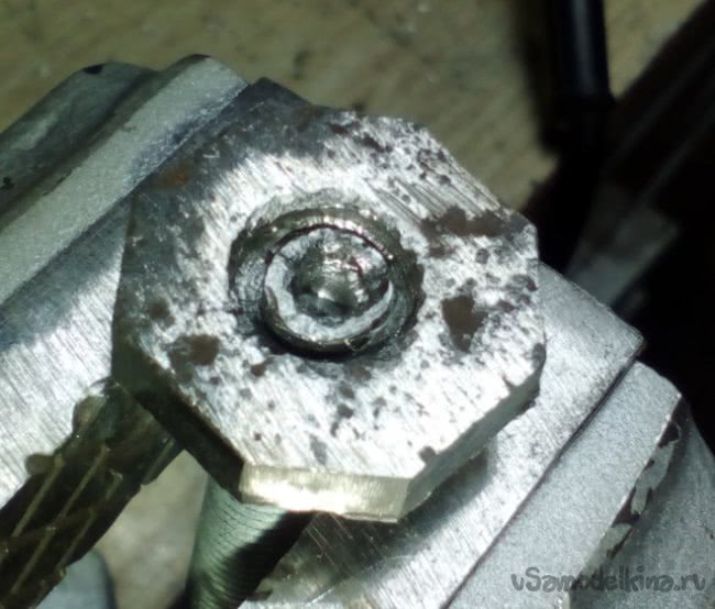 Теперь остается установить шайбу на винт и расклепать так чтобы она свободно вращалась, но клепка не выступала за шайбу.