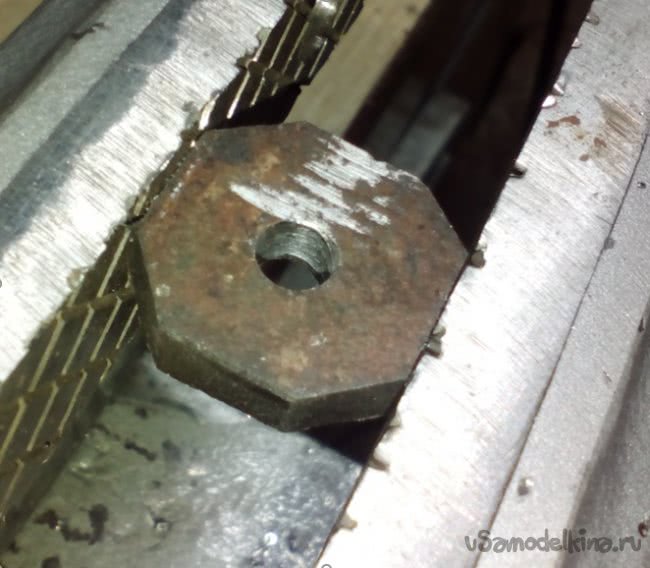 Чтобы упор мог вращаться на винте и в тоже время иметь надежное основание навернем на винт гайку и сточим резьбу под посадку шайбы упора.