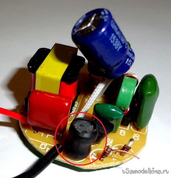 В схеме были использованы катушки от двух одинаковых люминесцентных лампочек «ЭРА» (давно валялись без дела, пользуюсь светодиодными). Т.к. у меня не было под рукой LC-метра, а вычислять параметры другими способами не было желания, то их индуктивность мне пока не известна.