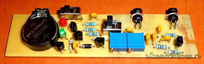 В мастерской приборчик тестировался в первом режиме. Как оказалось, благодаря наличию переключателя и двух подстроечных резисторов, приборчик можно настроить либо на два уровня чувствительности или на два разных режима работы.