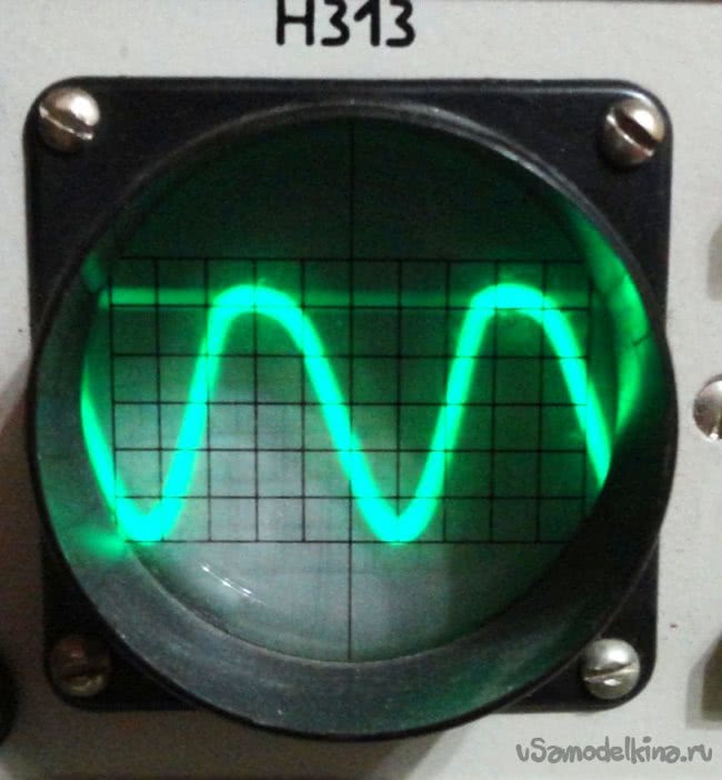 В описаниях, найденных в интернете, аналогичных схем устройств указывались разные рабочие частоты от 30кГц до 120кГц. Подбором частотозадающего конденсатора C1 удалось добиться синусоиды относительно правильной формы на излучающей катушке L1. Рабочая частота получилась около 91кГц.