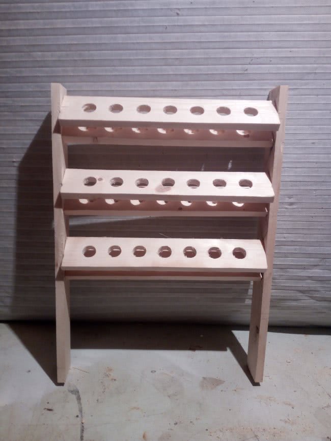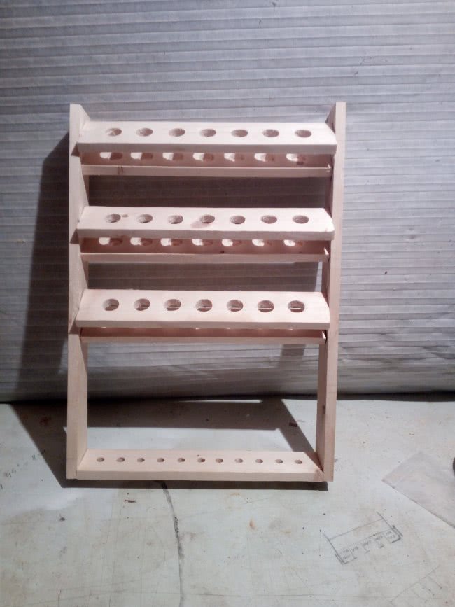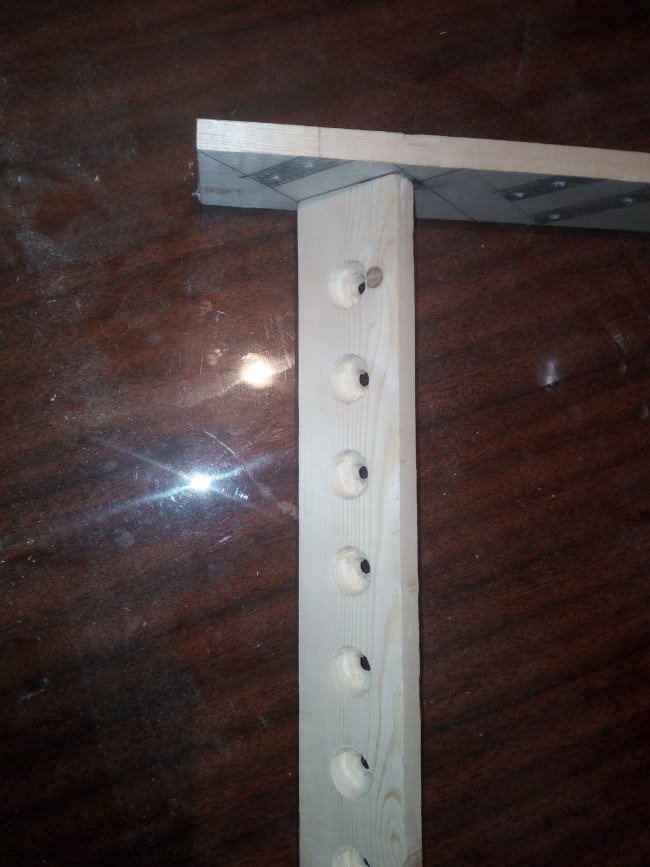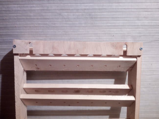 Единственное что хочу добавить для тех, кто захочет повторить и сделать такую же полку - не используйте перовое сверло для отверстий в нижних, упорных планках, если она у вас такой же толщины что и у меня. Это связано с тем, что отверстие получается все равно сквозное. Хотя оно и маленькое, но вот как раз в него и будут проваливаться и выпадать тонкие сверла маленького диаметра. Мне пришлось заделывать их.