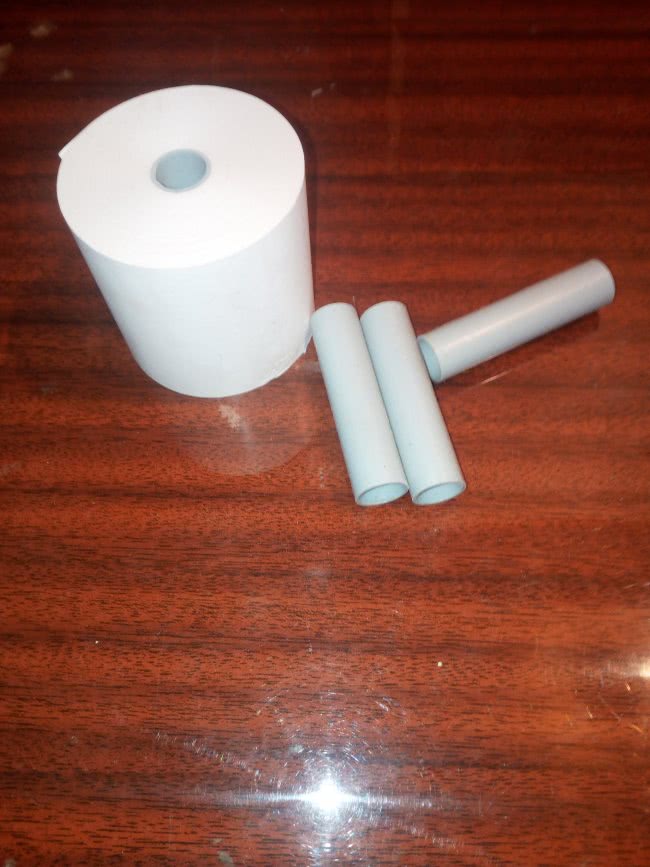 Во все отверстия на шести верхних планках вставляю трубки от катушек термобумаги для печати чеков. Можно вставить любые трубки, которые будут играть роль тубусов, но т.к. я смог на работе набрать их в достаточном количестве, то их и использую.