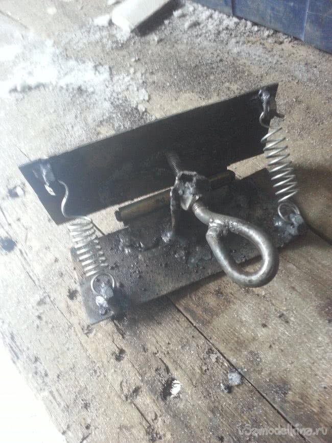 Теперь нужно, чтобы площадка быть неподвижной с обратной стороны проварить 4 гайки по краям. Нашел подходящий длины две пружины, поставил их на место, как надо отрегулировать натяжение. Покрутил болт и все регулируется, на фото виден максимальный угол и минимальный.