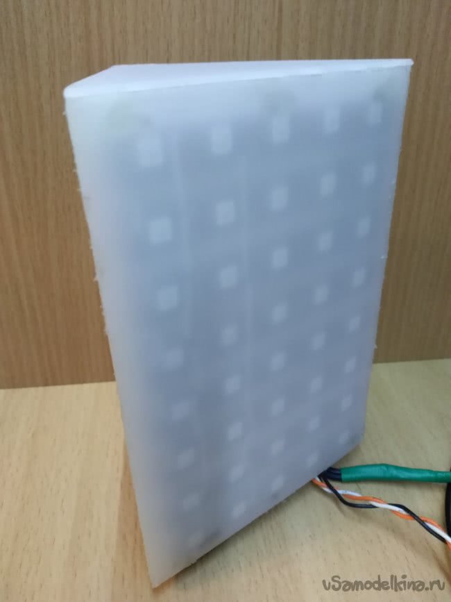 Именно в этом шаге я и забыл написать об изготовление финишного покрытия пластиком. Исправляюсь. Нам необходим пластик толщиной от 2 до 5 мм. Пластик должен быть матовый или как его еще называют «молочный». Его можно заказать в интернет магазине или aliexpress. А можно сделать как я. Взять пластик от ненужного ЖК монитора. Разобрав старый ЖК монитор или телевизор вынимаем матрицу. Аккуратно разбираем саму матрицу, там должно быть несколько слоев светофильтров (пленок) и матовый рассевающий пластик. Вот именно из такого я сделал данную лампу. Достав такой пластик вырезаем из него три прямоугольника. Если вы хотите, чтобы светодиоды были видны как точки, как у моей лампы, пластик надо клеить вплотную к светодиодам. В таком случаем прямоугольники должны быть 137 х 95 мм. Выглядят примерно так: