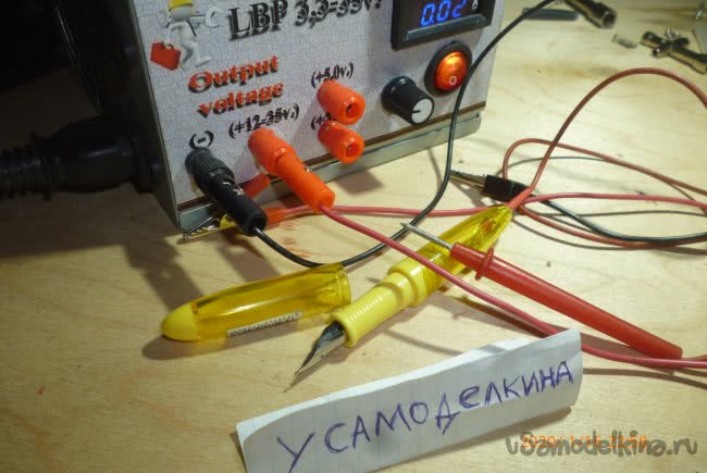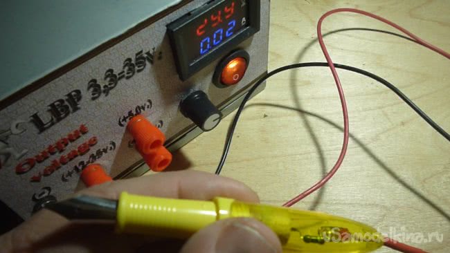 9. Проверяем универсальный пробник, для проверки низко вольтовых цепей постоянного тока, в работе.