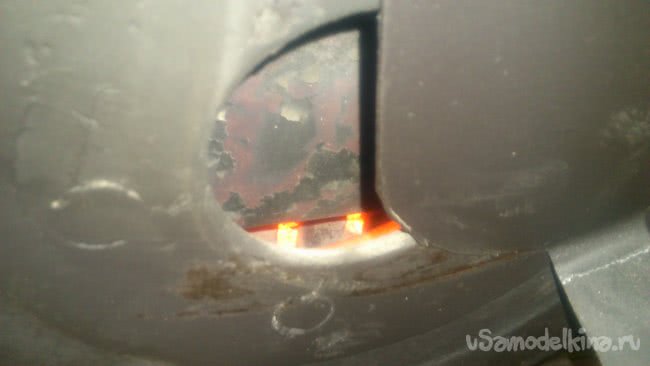 Осталось разместить инжектор в переднем диске (который с люком). Для этого в нижней части было прорезано нужное отверстие: