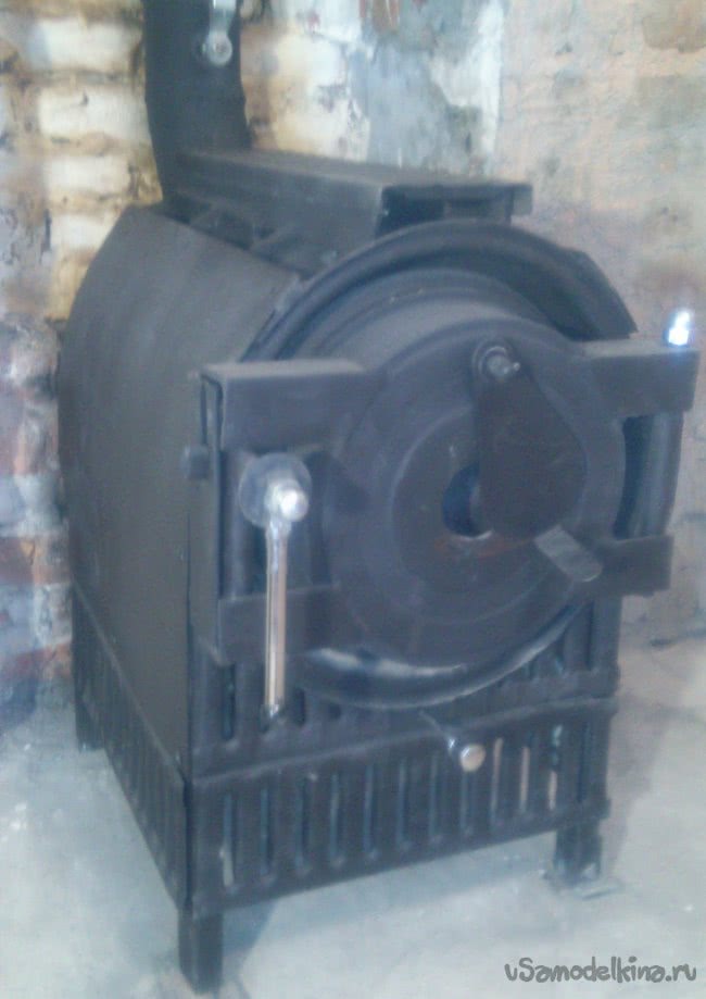 И самым существенным плюсом является относительная простота изготовления и, так-же, доступность и дешевизна используемых материалов. Все компоненты для её изготовления я нашёл в своих запасах "нужного металлолома". Купить пришлось только метр стальной трубы для дымохода, метр асбестового шнура для уплотнения люка, и баллончик чёрной термоэмали.