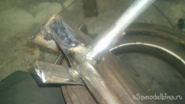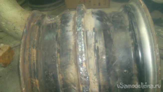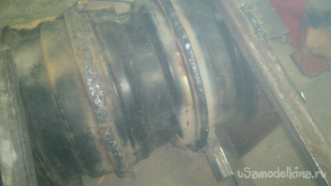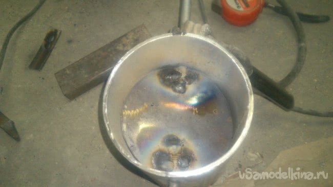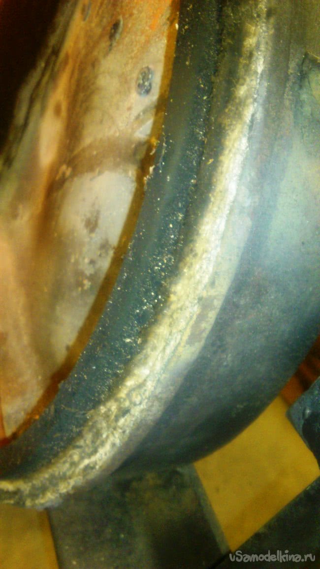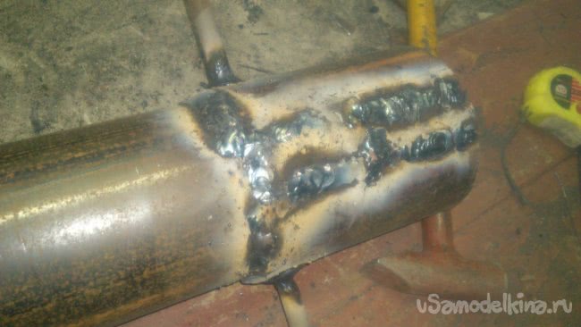 После этого я заварил место выхода трубы. Для надёжности, немного подумав, я, всё-же обварил так-же и места завальцовки.