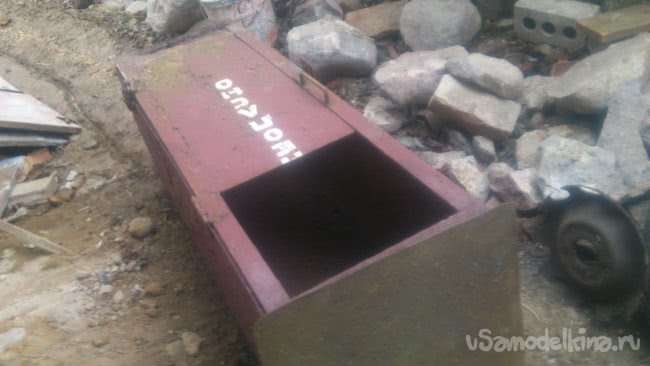 Заднюю стенку я решил вырезать из старой будки для газовых баллонов, которая была изготовлена из листовой стали толщиной 2 мм, и уже служила мне "донором" материала ранее.))))