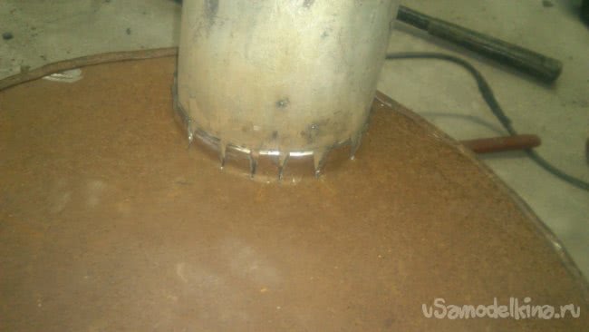 Выбрав одну поровнее, я вырезал из неё сектор, который вварил в низ топки.