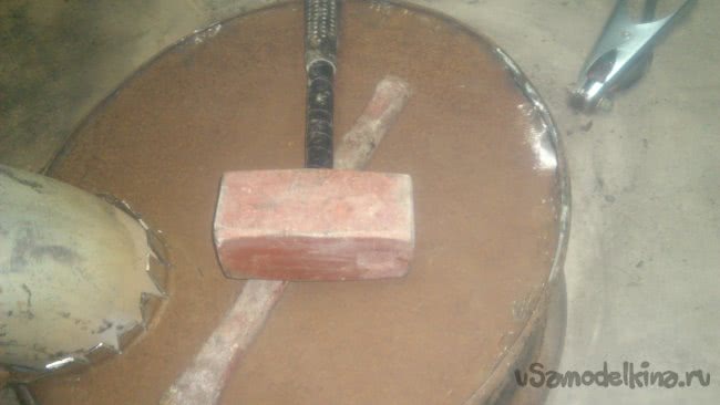Одел на него мою заднюю стенку, обсадил на место, и, кувалдочкой, завальцевал край диска: