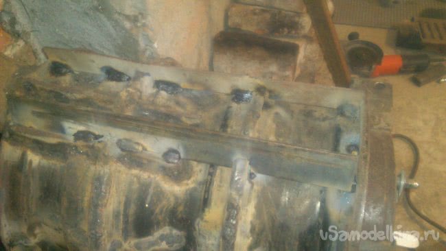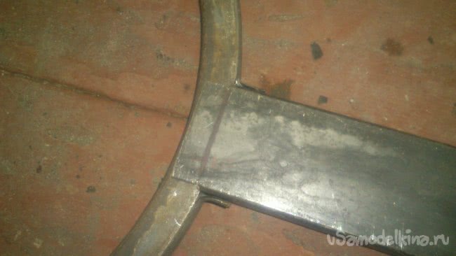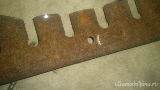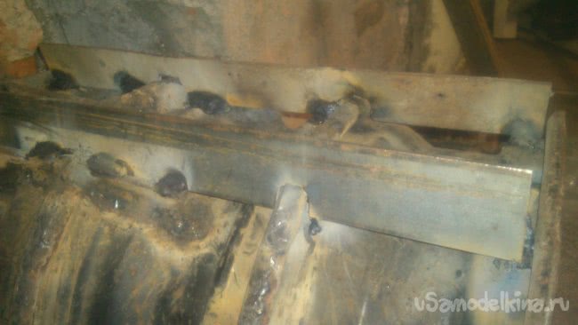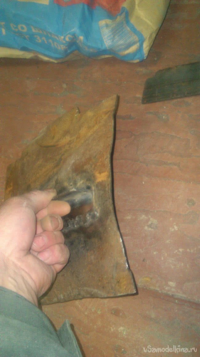 Маленькие отверстия я впоследствии тоже заварил толстым железом. Но это было позже - я подождал, пока в ходе изготовления у меня образуются обрезки полосы подходящих размеров.)))