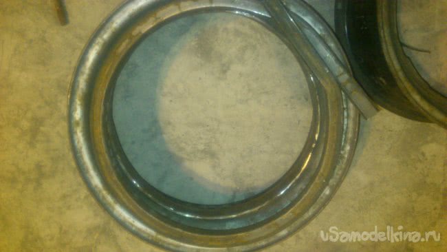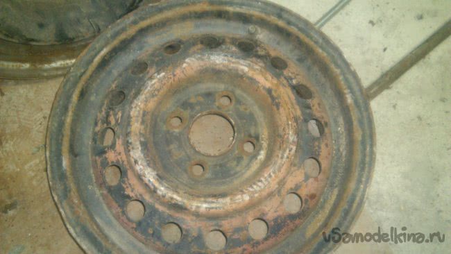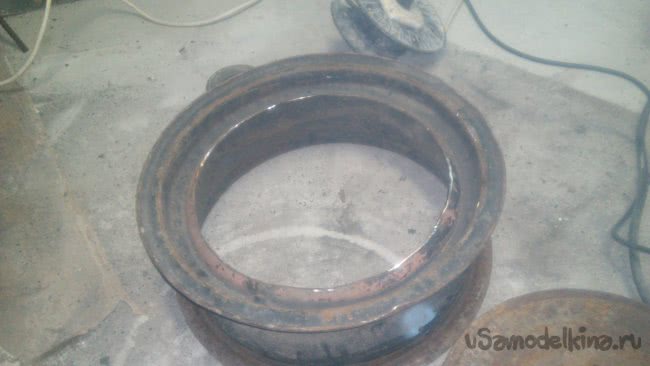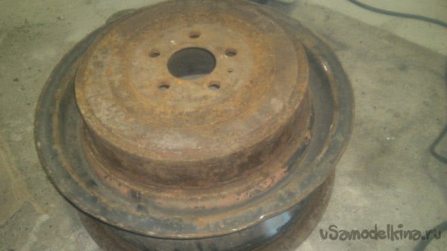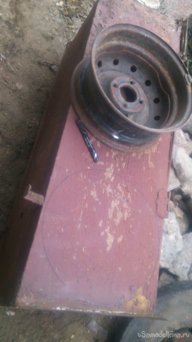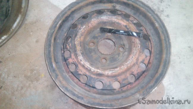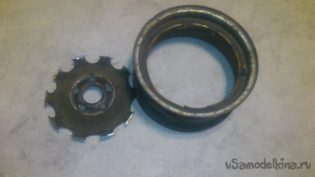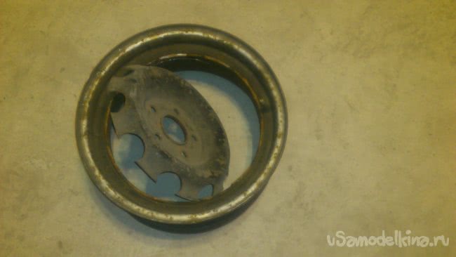 Теперь я взял ещё один колёсный диск и вырезал его середину: