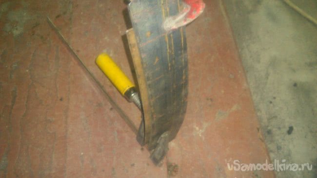 Положив на него барабан, я убедился, что он полностью эти отверстия перекрывает. Обрисовав маркером его диаметр, я вырезал внутреннюю часть диска по этой линии: