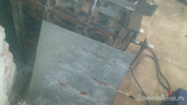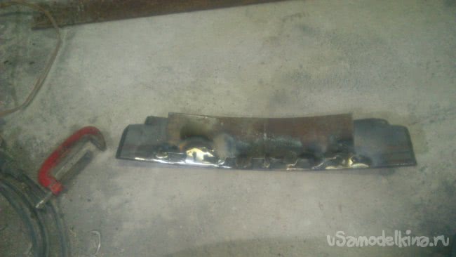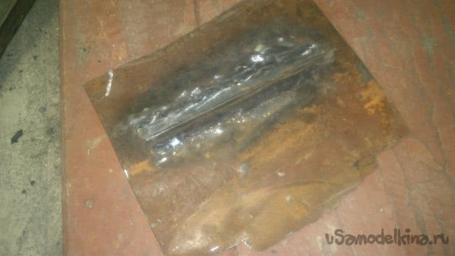 Закончив подгонку и "примерку", я притянул к пластине струбцинами тонкую пластину так, чтобы она чуть выступала и приварил её только по противоположенному краю: