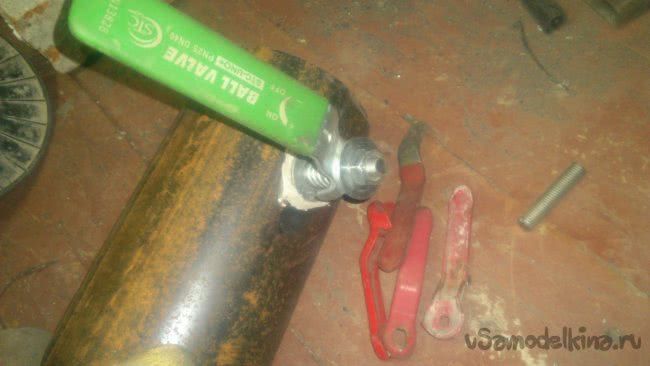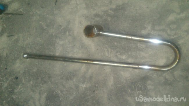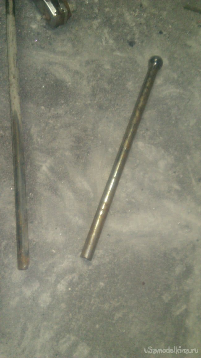 На глаза попался ржавый остаток какой-то вешалки. И я решил отрезать кусок трубки с шариком на конце, и, впоследствии, одеть на рукоятку запора топки и прихватить сваркой... Для красоты.)))