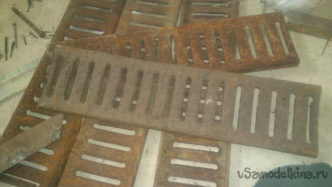 Люк готов. Теперь доработаем топку. У меня валялись вот такие ржавые решётки от уличных ливневых лотков: