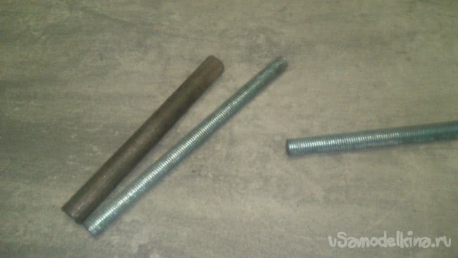 Для этого я использовал обрезок шпильки М4 и красивую гайку-набалдашник с такой-же резьбой, бывшую когда-то на рычаге дивертора в старом смесителе: